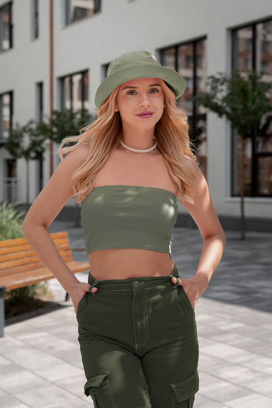 Artichoke Green Tube Crop Top (Women | Bandeau Top)